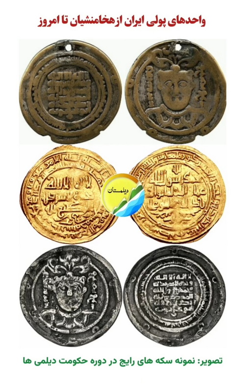 10- دينار: واحد سکه طلاي ساساني برابر 20 درم و واحد پول دوران ديلميان به علاوه درهم ديلمي